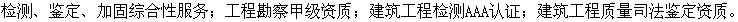 巖土工程勘察設計、地基處理、建筑物沉降觀測;結(jié)構(gòu)檢測、鑒定、改造加固設計施工;建筑材料檢測,混凝土(砂漿)非破損檢測;室內(nèi)環(huán)境主要污染物質(zhì)檢測;地基基礎、混凝土構(gòu)件、鋼屋架等結(jié)構(gòu)檢測;工程監(jiān)理;工程技術鑒定,司法鑒定,事故診斷及處理;特種工程施工等方面的研究與開發(fā)應用、技術服務工作。